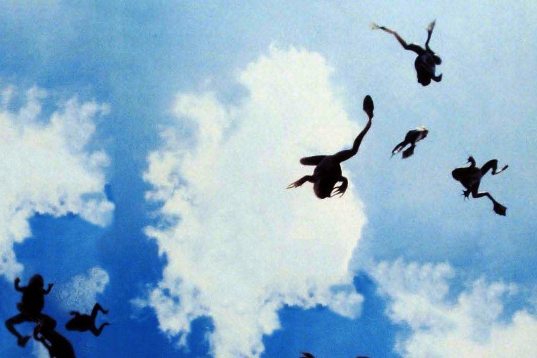 قورباغهها هم مانند ماهیها جزء موارد عجیبی بودند که از آسمان به زمین ریختند. در سال ۲۰۰۹ این اتفاق افتاد و تعدادی قورباغه در قسمت مرکزی ژاپن از آسمان به سمت زمین ریخته شد و به صورت گسترده خبرساز شد.