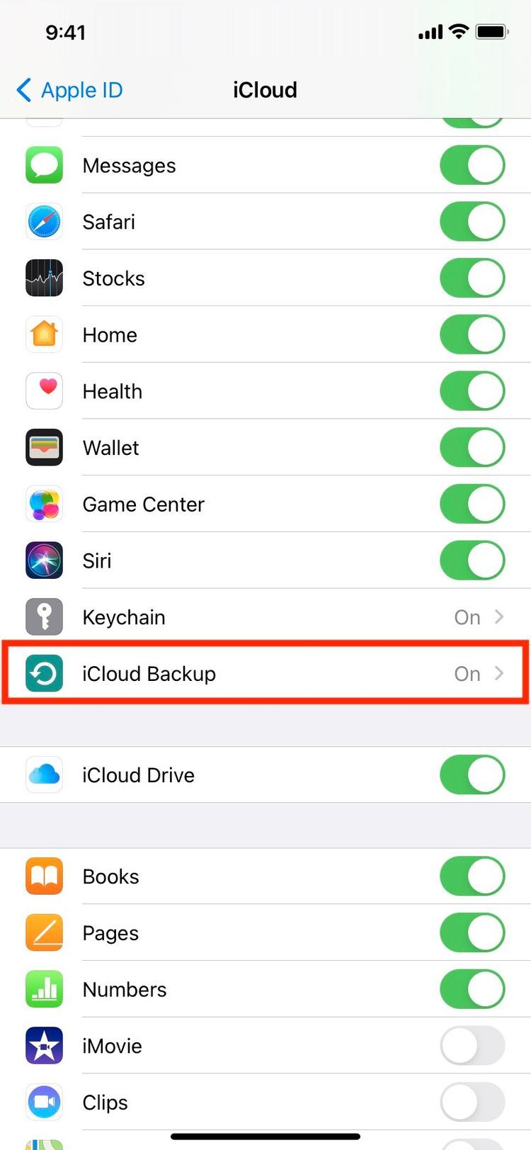 گزینه آیکلود و سپس بکاپ آیکلود را انتخاب کنید.