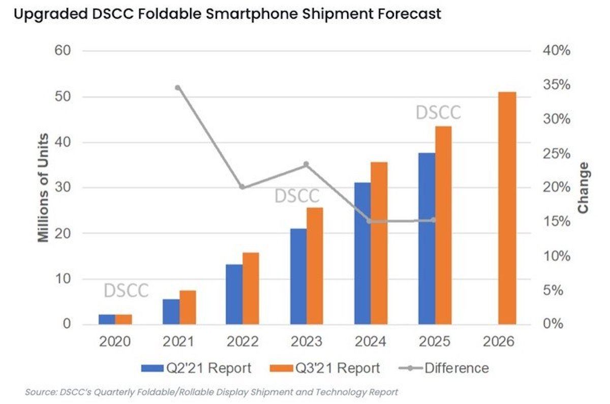 براساس گزارش DCSS، آینده برای گوشیهای تاشو بسیار روشن است. طبق پیشبینی این شرکت، فروش گوشیهای تاشو در سال ۲۰۲۲ دو برابر میشود و تا سال ۲۰۲۶ به ۵۰ میلیون دستگاه میرسد.