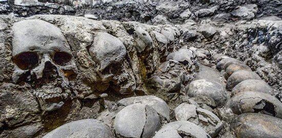 برجی که بنای آن متشکل از جمجمه زنان و کودکانی است که برای رضایت خدایان آزتکها قربانی شده بودند.