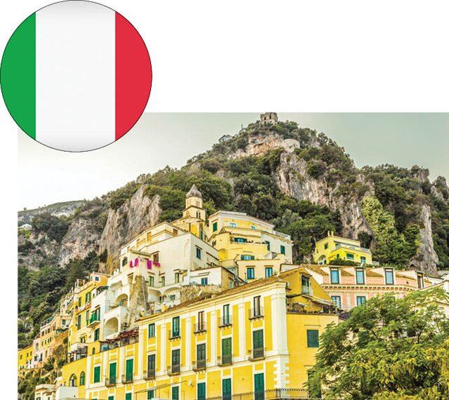 آمالفی و ساحل آن یکی از مناطق بسیار جذاب در گردشگری ایتالیاست. رنگی که به صورت سنتی در نمای ساختمانها در این منطقه استفاده میشود، زرد لیمویی است. دلیل اینکه چرا از چنین ترکیب رنگی استفاده میشود، چندان مشخص نیست اما هر چه هست در این منطقه لیمو جایگاه خاصی دارد. باغهای لیمو در این منطقه زیادند و لیمو یکی از محصولات اصلی آن است. البته برخی رنگ نمای ساختمانها را نه نمادی مرتبط با لیمو که نمادی از آفتاب و هوای آفتابی آن میدانند. طی سالهای اخیر تعدادی از ساختمانهای این منطقه سراغ رنگهای دیگری مانند صورتی کمرنگ رفتهاند اما هنوز هم ترکیب زرد لیمویی و آبی (به واسطه دریای خوشرنگ در این منطقه) نماد آمالفی برای بسیاری است. البته بد نیست بدانید که رنگ آبی خاصی از خانواده فیروزهای وجود دارد که به آن آمالفی میگویند و به خاطر رنگ خاص دریا، این منطقه چنین نامگذاری شده است.