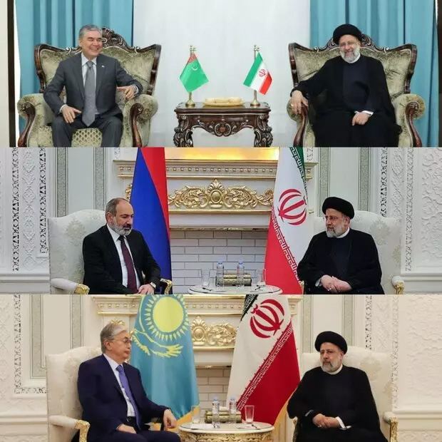 پیش از شروع اجلاس سران، رئیس جمهور ترجیح داد با رؤسای جمهور قزاقستان و ترکمنستان و همچنین نخست وزیر ارمنستان دیدار و گفتگو کند. در این دیدارهای دو جانبه، رئیسی مجدد بر بهبود روابط اقتصادی و همچنین ظرفیتهای تجاری دوجانبه تاکید کرد.