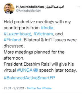 گزارش توئیتری امیرعبداللهیان از رایزنیهای امروزش در نیویورک