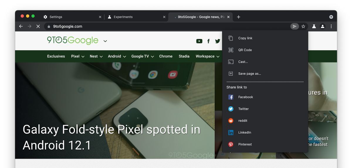 کروم ۹۴ دسکتاپ با ویژگی Sharing Hub به کاربران اجازه میدهد بهراحتی لینکها را کپی کنند، کد QR بسازند و صفحات را ذخیره کنند. بهعلاوه، بخشی به نام Share link to وجود دارد که امکان اشتراکگذاری محتوا در توییتر، فیسبوک، ردیت و سایر شبکههای اجتماعی را فراهم میکند. برای فعالسازی این قابلیت باید فلگ chrome://flags/#sharing-hub-desktop-omnibox را فعال کنید.