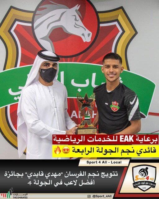 قائدی بهترین بازیکن هفته چهارم شد و نخستین جایزه خود را در لیگ امارات کسب کرد.