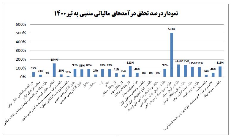 براساس این گزارش، درصد تحقق هریک از درآمدهای مالیاتی در دوره مذکور به شرح نمودار زیر است: