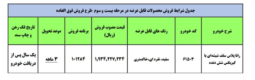 طرح جدید فروش فوری خودرو رانا پلاس با سقف شیشه ای و گیربکس 6 سرعته آغاز شد.