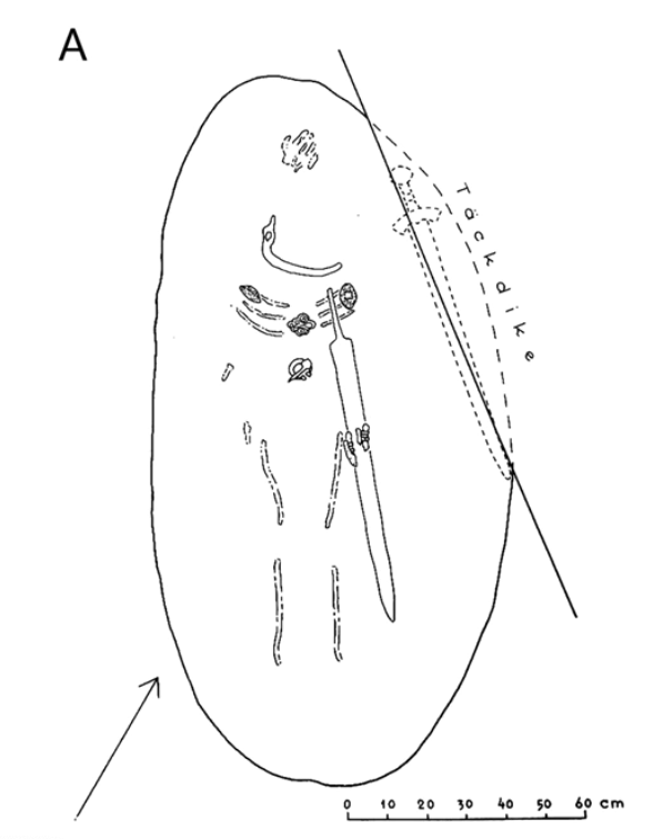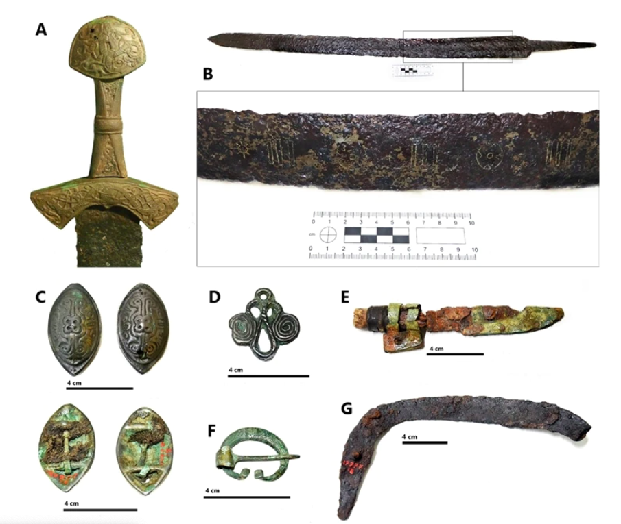 به همراه او، شمشیری بدون قبضه روی جسد درون قبر قرار دادند که احتمالا حرکتی منسوب به مردان در دوران قرون وسطی بود. احتمالا بعدها شمشیری با دسته برنزی در کنار او قرار دادند که نشانهای از احترام دیگران به اوست.