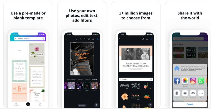 سرویس Canva یکی از ویرایشگرهای تصویر محبوب به شمار می‌رود که می‌توان از قابلیت‌های مرتبط با افزودن متن و افکت‌های آن برای ساخت استوری‌های منحصر به فرد و خلاقانه استفاده کرد. تعداد قالب‌های موجود در این برنامه بسیار زیاد هستند و پتانسیل استفاده در زمینه‌های متعددی را دارند. همچنین مجموعه عظیمی از تصاویر آماده برای استفاده به عنوان پس زمینه در اختیار کاربران قرار دارد. Canva نه تنها به عنوان اپلیکیشن موبایل در دسترس است، بلکه خدمات خود را در پلتفرم‌های دیگر از جمله دسکتاپ هم ارائه می‌دهد.