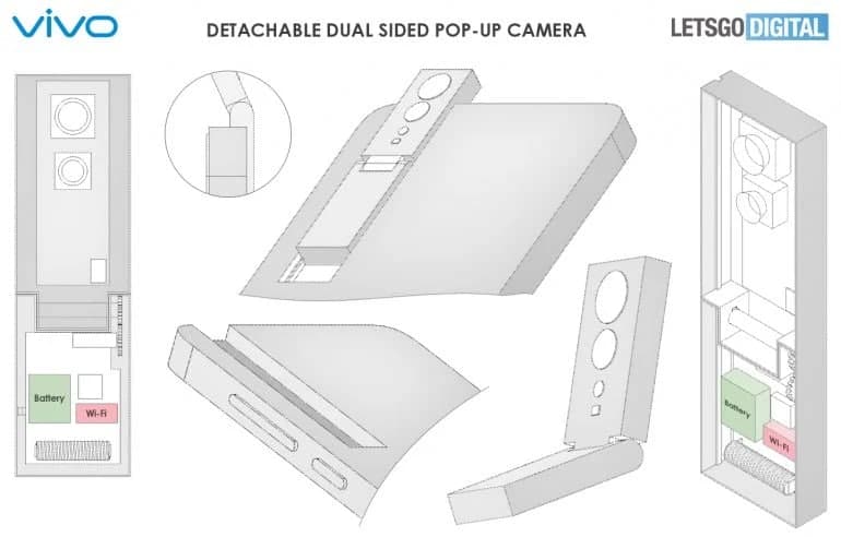 در حالی که دوربین پاپآپ معمولا دارای یک ماژول دوربین برای گرفتن عکسهای سلفی است، این نسخه همچنین دارای یک دوربین دوگانه در قسمتپنل پشتی است که به عنوان سنسورهای اصلی گوشی روی پنل پشتی دستگاه عمل میکند. هر چند این ویژگیها بسیار چشمگیر هستند، مهمترین بخش پتنت ویوو به این نکته اشاره دارد که میتوان تمام ماژول پاپآپ را از گوشی جدا کرد.