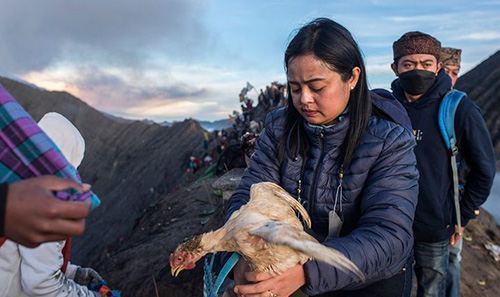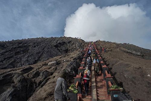 هزاران اندونزیایی در یک آیین سنتی با قدمت چند قرن به سمت آتشفشان فعال اندونزی حرکت کردند تا دامها و سایر قربانیان را به درون دهانه شعله ور بریزند.