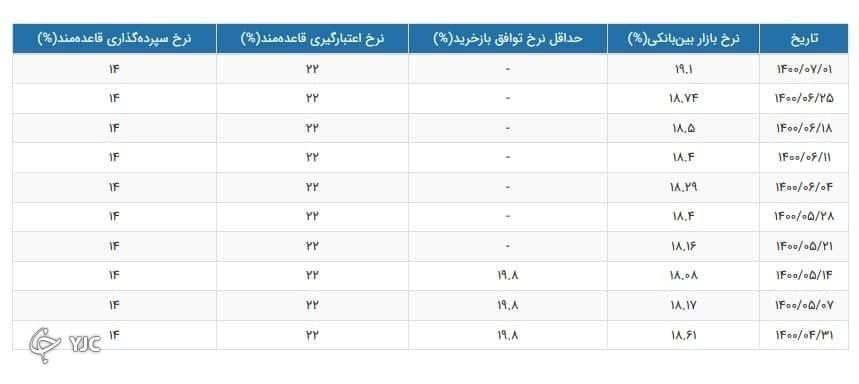 نرخ سود بازار بین بانکی با افزایش ۰.۳۶ درصدی نسبت به آخرین نرخ هفتگی این بازار، به ۱۹.۱ درصد افزایش یافت.