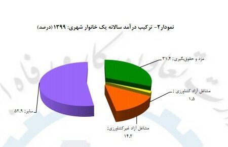 ۳۱.۴ درصد منابع درآمدی خانوارهای شهری از محل مزد و حقوق بگیری، ۱۴.۲ درصد از محل مشاغل آزاد غیر کشاورزی و ۱.۵ درصد از محل مشاغل آزاد کشاورزی تامین شده است.