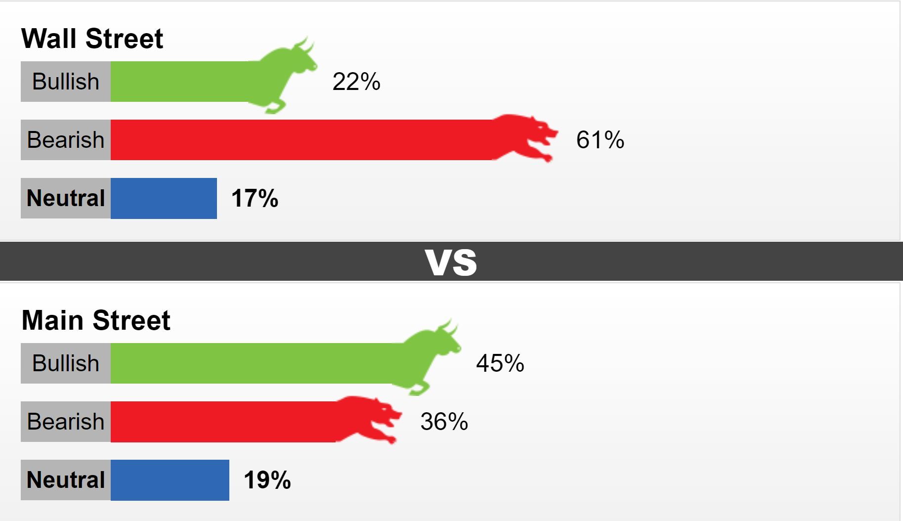 همچنین در میان سرمایه گذاران نیز با وجود اینکه آرای صعودی بیشترین تعداد را به خود اختصاص داده است، میزان احساسات صعودی به پایین ترین میزان خود از هفت ماه گذشته رسیده است.