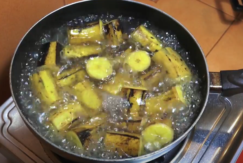. آیا پوست موز جدا شد؟ تابه را از روی حرارت بردارید.