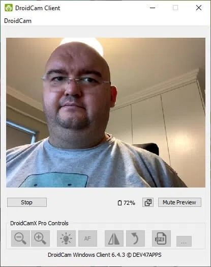 اکنون باید پیش نمایش دوربین تلفن هوشمند را در کلاینت ویندوز مشاهده کنید. درویدکم (DroidCam) را در اپلیکیشنی که برای برقراری ارتباط استفاده می کنید به عنوان وبکم خود انتخاب کنید.
