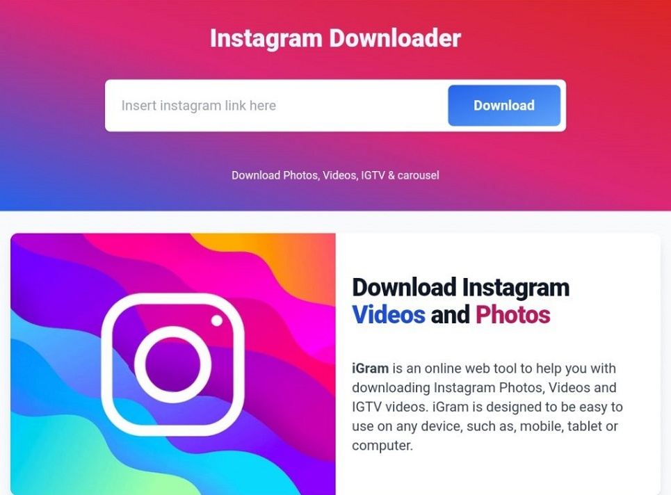 برای افرادی که قادر به دانلود اپلیکیشن ها در دستگاه خود نیستند یا تمایلی به انجام این کار ندارند، گزینه های دانلود ویدئوهای اینستاگرام مبتنی بر وب نیز در دسترس هستند. یکی از بهترین گزینه ها در این زمینه به نام iGram شناخته می شود که در ادامه روش استفاده از وب سایت آن ارائه شده است: