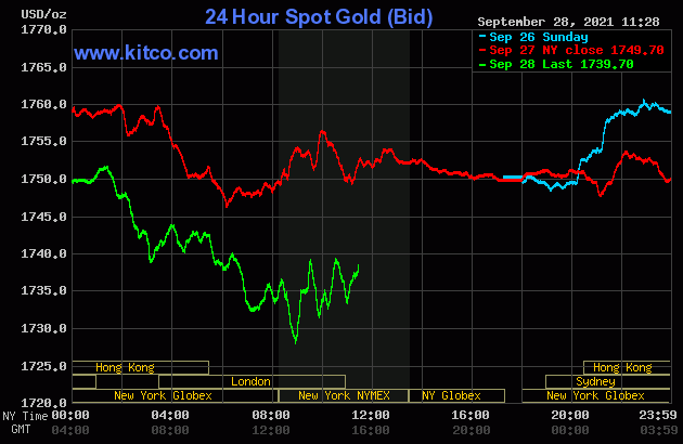 هم اکنون هر اونس طلای جهانی در عدد 1739 دلار در حال معامله است و 11 دلار کاهش را در روز نشان می دهد. نقره نیز همانند طلا سقوط شدیدی را تجربه کرده و به 22.19 دلار به ازای هر اونس رسیده است.