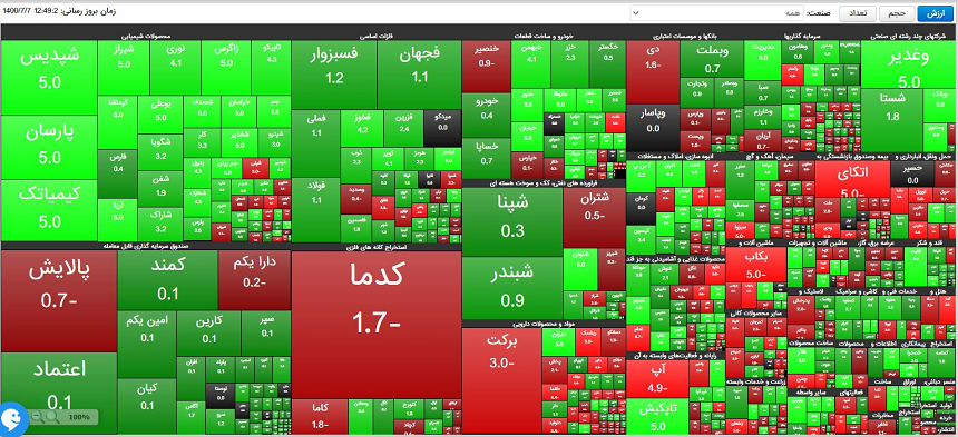 نقشه معاملات امروز بورس تهران امروز نمادهای آریاساسول، پتروشیمی زاگرس، صنعتی مینو، پتروشیمی تندگویان و پالایش نفت لاوان بیشترین اثر افزایشی بر شاخص فرابورس را داشته و نمادهای بیمه پاسارگاد و پالایش نفت شیراز بیشترین اثر کاهشی بر شاخص فرابورس را داشتند.
