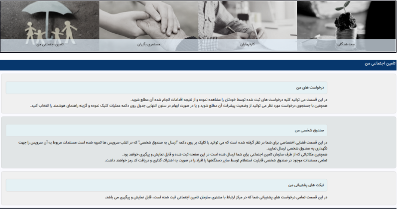 فرد جهت مشاهده وضعیت در خواست می تواند در صفحه اصلی با مراجعه به تامین اجتماعی من و از منوی درخواست های ثبت شده وضعیت درخواست خود را مشاهده کند.