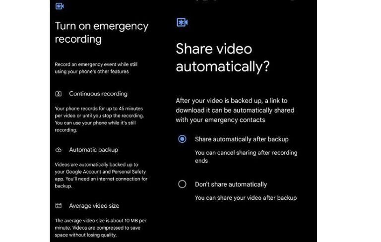 اگر از گوشی‌های هوشمند گوگل پیکسل استفاده می‌کنید، می‌توانید این قابلیت جدید را در تنظیمات اپلیکیشن امنیت شخصی فعال پیدا کنید. برای فعال کردن تنظیمات خدمات اضطراری SOS باید دکمه روشن / خاموش گوشی خود را پنج بار فشار دهید. با فعال‌سازی این قابلیت گوشی شما برای ضبط و ارسال ویدیو به مخاطبین اضطراری در شرایط اورژانسی آماده خواهد بود.