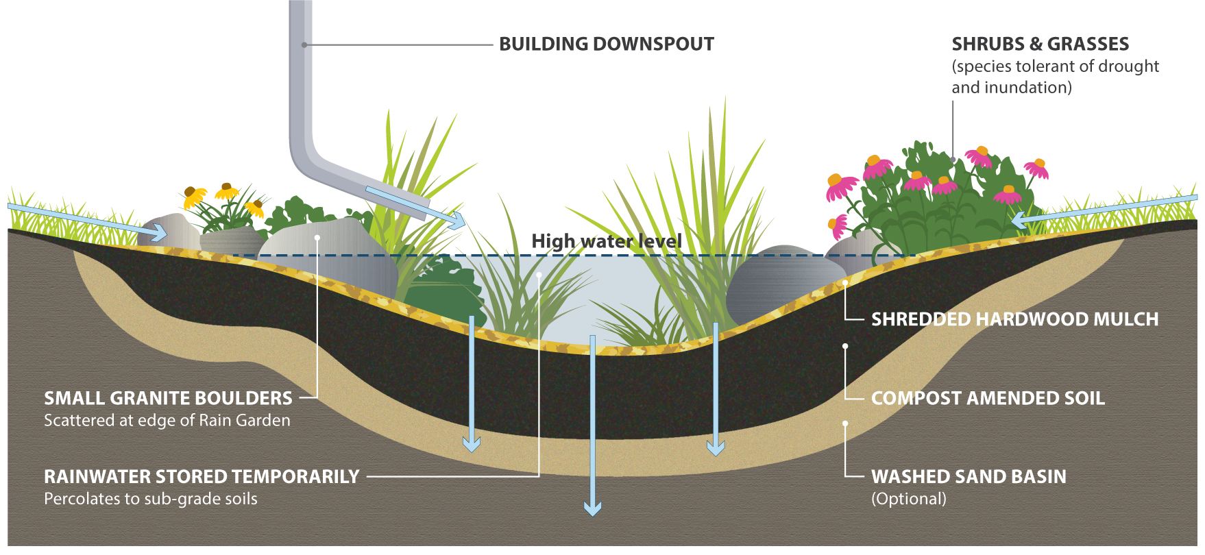 آب باران و طوفانهایی که رها میشوند روغن موتورها، زبالهها و میکروبهایی را با خود وارد چرخه آبی میکنند که میتواند سلامت آب را به خطر بیاندازد. با ایجاد باغچه و کاشتن گیاه و درختان در حیاط خانه میتوانید به چرخه آب و فیلتر طبیعی آن با خاک کمک کنید. ناودانها معمولا به راهآبهایی هدایت میشوند که آسفالت یا سنگ هستند و به خاک نفوذ نمیکنند. میتوانید ناودان خود را به راهی هدایت کنید که به باغچه ختم میشود. میتوانید با نصب تانکرهای جمعآوری آب و هدایت ناودان به آن سمت آب باران را جمعآوری کنید و برای آبیاری باغچه و یا سایر نقاط استفاده کنید.