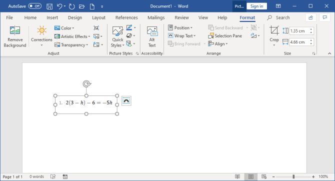 با انتخاب تصویر، میتوانید در تب Format در نوار بالایی برنامه آفیس، مشخصات آن مانند موقعیتش را تنظیم کنید. یکی از مشکلات این روش، ایستا بودن تصویر است و نمیتوانید متن درون آن را ویرایش کنید. بنابراین چنین رویکردی مناسب تصاویری است که متن چندانی در آنها به چشم نمیخورند.
