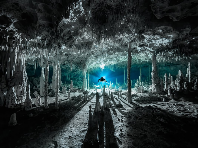 اسپلئوتم هااسپلئوتمها (استالاکتیتها و استالاگمیتها) سایههایی در Quintana Roo مکزیک ایجاد میکنند. مارتین برون
