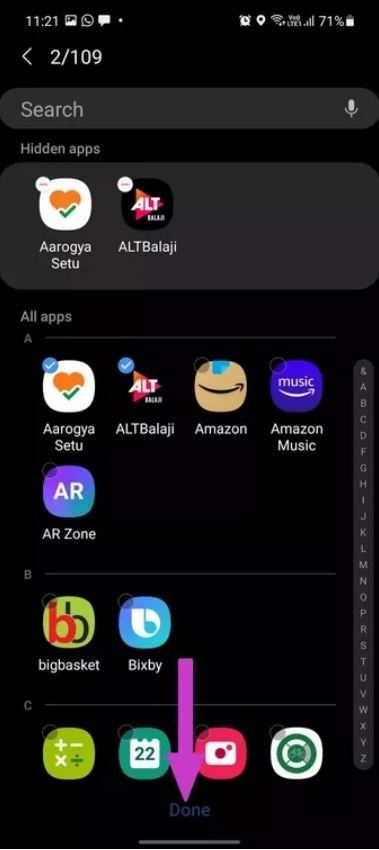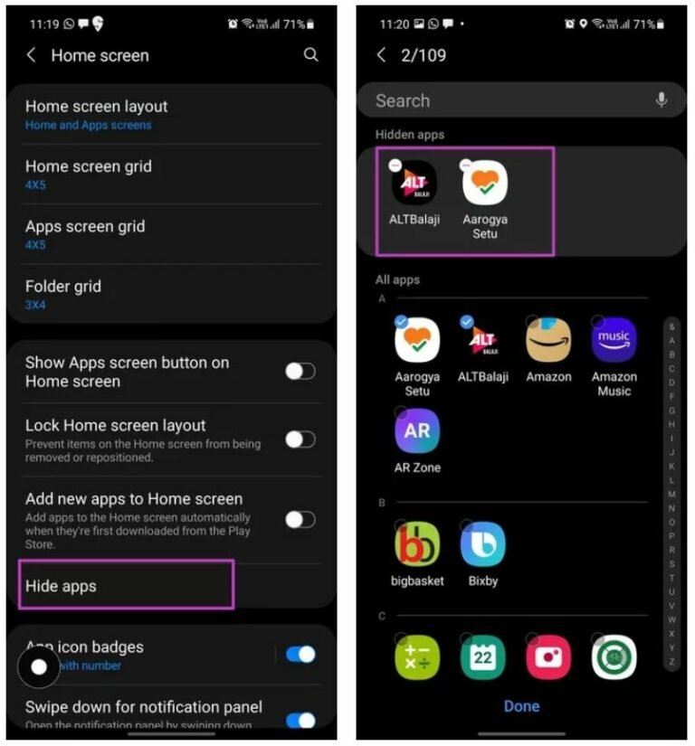 درآوردن اپلیکیشنها از حالت مخفی در One UI