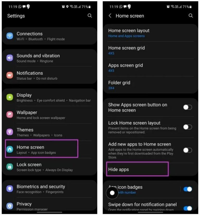 بر خلاف پیکسل لانچر، در One UI تنظیمات پیشفرضی برای مخفی کردن اپلیکیشنها وجود دارد. برای استفاده از این تنظیمات مراحل زیر را دنبال کنید:
