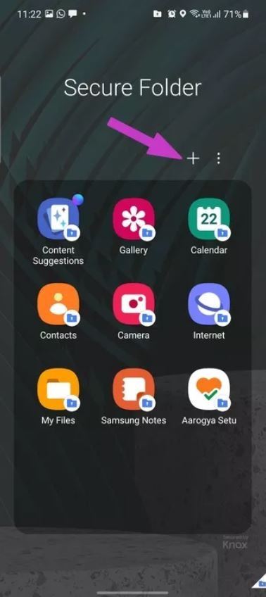 قدم چهارم: اپلیکیشن Secure Folder را باز کنید و روی آیکن + در بالای صفحه اشاره کنید.