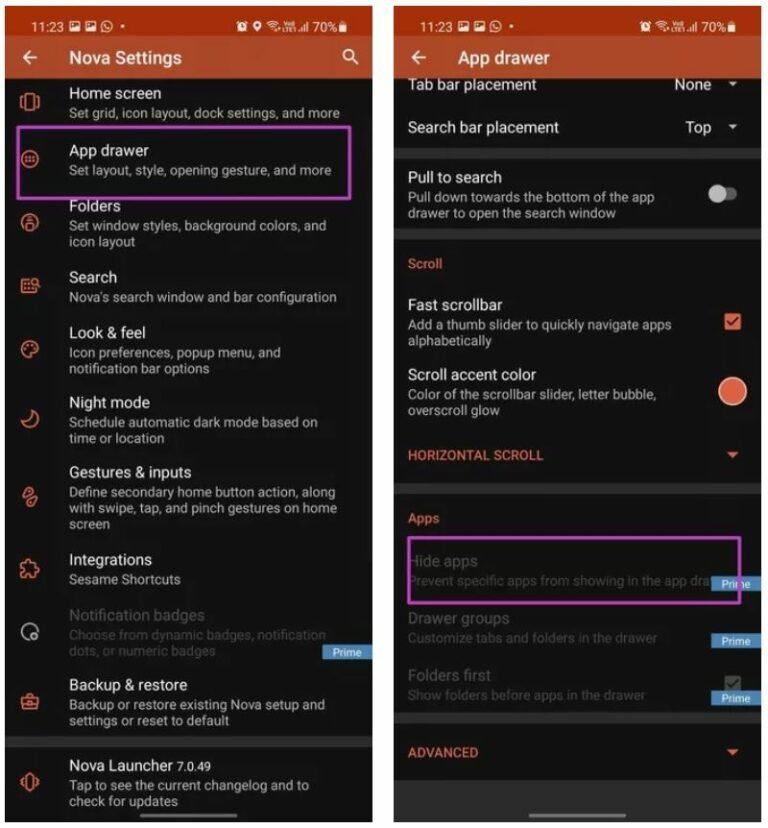 از جمله امکانات Nova Launcher میتوان به مخفی کردن اپلیکیشنها اشاره کرد. برای انجام این کار لازم است مراحل زیر را پیش ببرید: