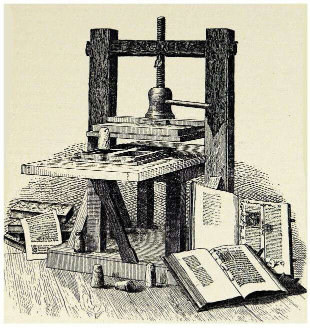 قبل از ظهور اینترنت، هیچ نوآوری به اندازه دستگاه چاپ گوتنبرگ به گسترش دانش کمک نکرد. دستگاه گوتنبرگ که در سال ۱۴۴۰ در ماینز آلمان توسعه یافت، با استفاده از قالبی که امکان تولید سریع قطعات از نوع آلیاژ سرب را فراهم میآورد، کمک بزرگی به صنعت چاپ کرد.