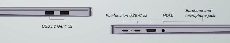 در یک لبه این لپتاپ، دو درگاه یواسبی تایپ سی و درگاه HDMI و جک ۳/۵ میلیمتری ترکیبی برای هدفون و میکروفون و در لبه دیگر آن، دو درگاه یواسبی A 3.2 نسل یک دیده میشود. میتبوک ۱۶ هواوی به دو بلندگوی ۲ واتی استریو مجهز شده است که صدای آن از زیر صفحهکلید پخش خواهد شد. این محصول از دو میکروفون داخلی و نیز فناوری حذف نویز بهره میبرد که باعث میشود حجم باس صدا حین تماسهای صوتی کاهش یابد.