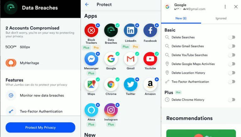 زمانی که Jumbo را نصب کنید، اپلیکیشن از شما میخواهد ایمیل خود را ثبت کنید تا احتمال نشت اطلاعات شما را بررسی کند. اگر اطلاعات شما بهسرقت رفته باشند، Jumbo به شما اطلاع خواهد داد کدام یک از سرویسها آسیبپذیر بودهاند. پس از آن، یکی از مهمترین کارهایی که باید انجام دهید تغییر رمز عبور این سرویس است.
