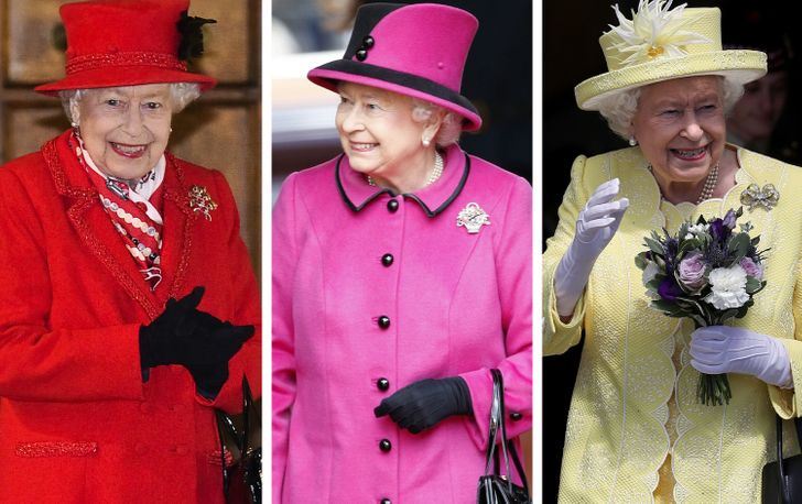 ملکه الیزابت دوم با پوشیدن رنگ های تند مطمئن می شود که از هر نقطه ای می تواند به راحتی تشخیص داده شود، امری که کمک می کند او را در جمعیت گم نکنند. اگر می خواهید که توجه ها را به خود جلب کنید این ترفند بسیار خوبی است چون رنگ های تند گزینه ای عالی برای ثبت شدن در خاطر دیگران هستند و به سرعت قابل تشخیص اند.
